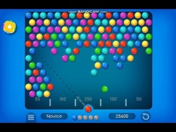 In Bubble Shooter Pro we have the typical rules for a classic bubble shooter game. But the grid is a little bit more filled, therefore we have helping line which indicates where the bubble will land. The goal of the game is to remove all the bubbles from the level by matching at least 3 or more same colored bubbles. In addition we gain points of where the bubble will land when it falls down.